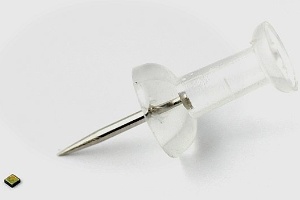 - O chip comestível ao lado de um pin dá a ideia de seu tamanho